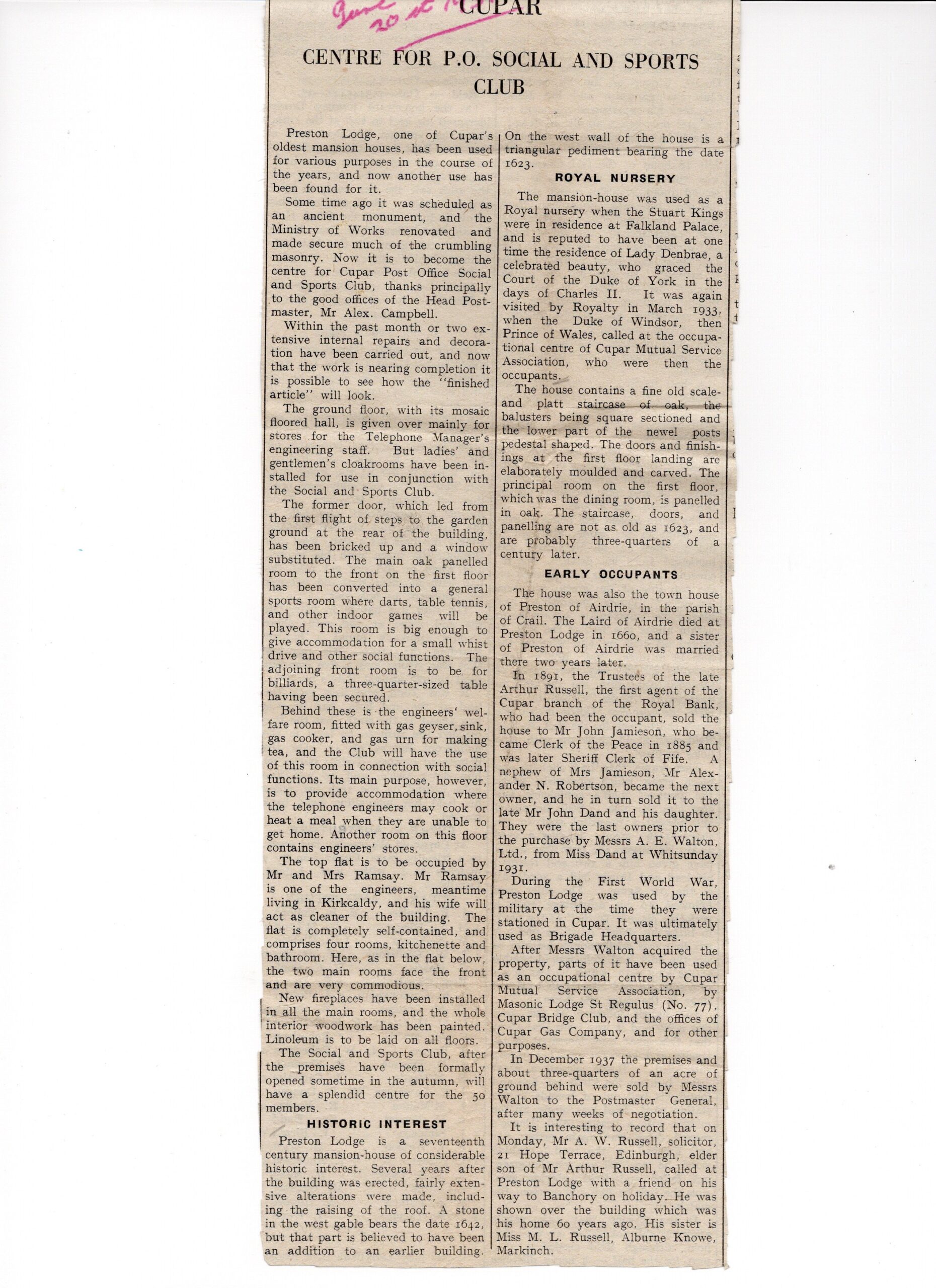 In addition to the press cuttings, the deposit of press cutting books from local businesses or organisations are of value. Examples of these include those of Speedie Brothers Auction Mart in Cupar and the Boys Brigade.